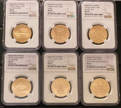 Набор золотых монет 100 рублей "Олимпиада 80" в слабах NGC MS 69