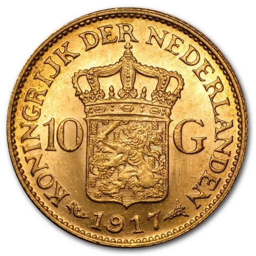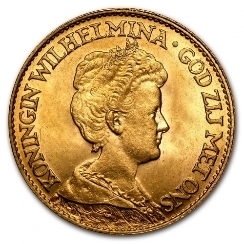 Золотая монета 10 Гульденов Нидерланды