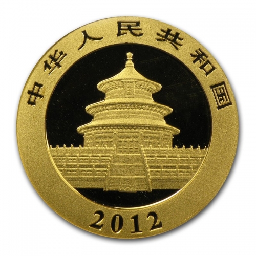 Золотая монета Китая 50 юаней "Панда" 2012г.,1/10 унции,3,11г.